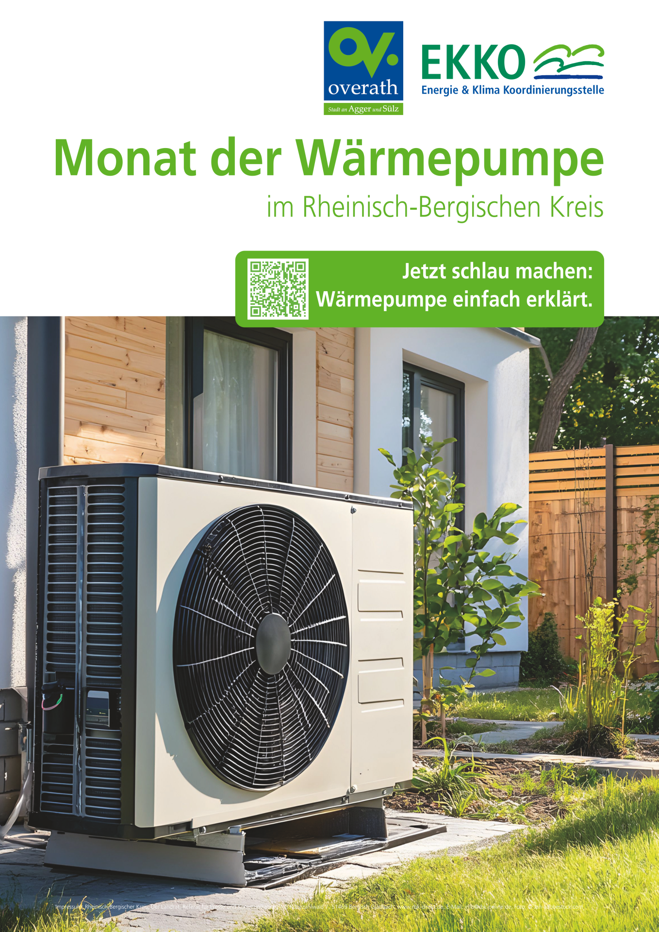 Im gesamten Monat November dreht sich im Rheinisch-Bergischen Kreis alles um die Wärmepumpe – eine Schlüsseltechnologie für die Energiewende und den Klimaschutz. Dazu laden das die Energie & Klima Koordinierungsstelle (Team EKKO) der Kreisverwaltung und alle kreisangehörigen Kommunen, sowie das Bergische Energie- und Ressourcenzentrum (BERZ)/:metabolon und die Verbraucherzentrale Nordrhein-Westfalen gemeinsam zu einem vielfältigen Aktionsmonat ein.