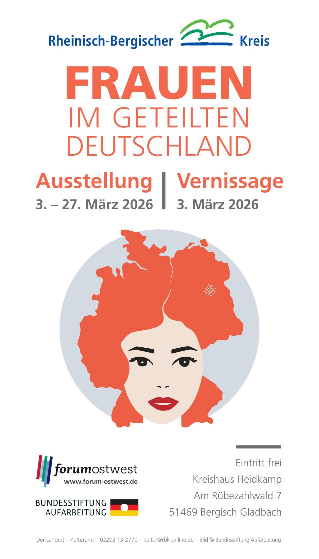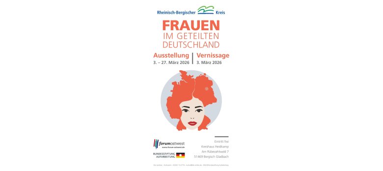 Die Ausstellung der Bundesstiftung zur Aufarbeitung der SED-Diktatur ist vom 3. bis 27. März 2026 im Kreishaus Heidkamp zu sehen. Sie ist eine Kooperation des Kulturamts und der Gleichstellungsstelle des Rheinisch-Bergischen Kreises und wird im Rahmen des Internationalen Frauentags sowie des Forums Ost-West präsentiert. Der Eintritt ist frei.