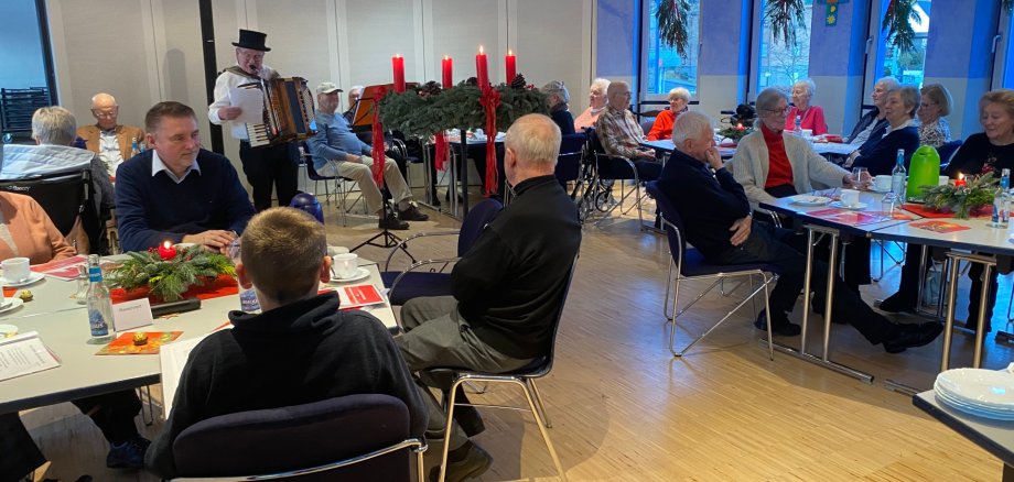 Für besondere Atmosphäre sorgte die musikalische Begleitung durch Hermann-Josef Ley, bekannt als „Dä Quetschenbüggel“. Mit Akkordeon und bekannten Liedern lud er die Gäste zum Mitsingen ein – ein Angebot, das auf große Begeisterung stieß und den Gedanken des Miteinanders eindrucksvoll unterstrich. Die musikalische Einlage stellte für viele Teilnehmende einen Höhepunkt der Veranstaltung dar.
