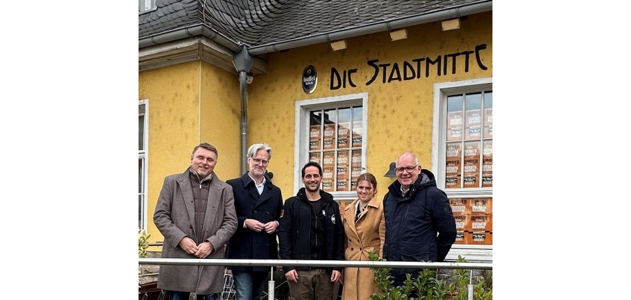 Für die ehemalige Gaststätte „Stadtmitte“ im Herzen von Overath steht die Nachfolge fest: Künftig wird dort das Gastronomiekonzept Burgerwerk einziehen. Beim gemeinsamen Pressetermin im Kulturbahnhof stellten Bürgermeister Michael Eyer, der Erste Beigeordnete Thorsten Steinwartz, Amtsleiter Manfred Allmayer (Immobilienmanagement), Wirtschaftsförderin Patricia Mockenhaupt sowie Gastronom Christos Batgidis das neue Konzept für den zentral gelegenen Standort vor.
